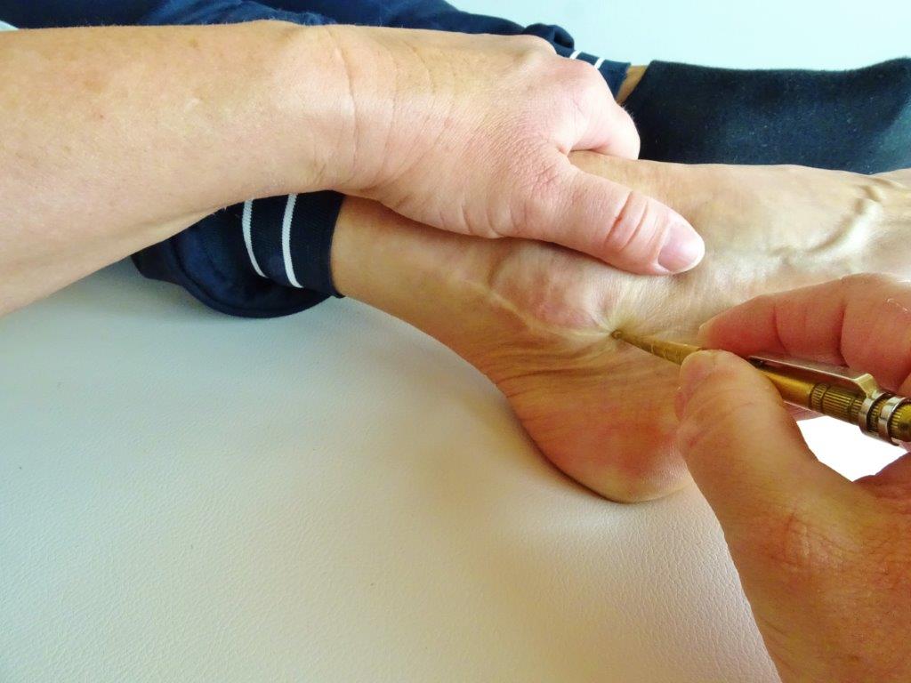 Die Entstörung erfolgt durch Austesten und Behandeln der Narbe mit einem Metallstäbchen.