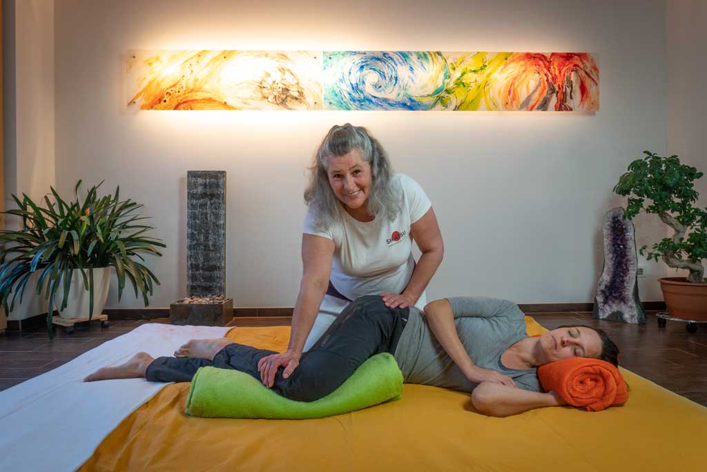 Shiatsu ist eine ganzheitliche Körperbehandlung, die Blockaden/Störungen im Energiesystem auflöst und zu einem guten Körper- und Wohlgefühl führt. Mit Druck von Daumen, Handballen oder Ellenbogen entlang der Meridianlinien und durch Gelenksmobilisation werden Yin und Yang in Einklang gebracht.
